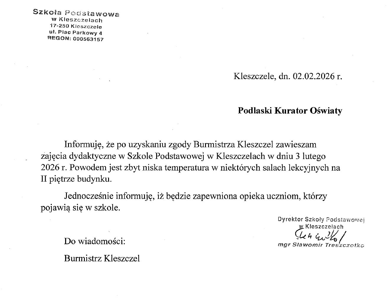 Od 7 do 20 lutego 2022 r. uczniowie klas V-VIII szkoły podstawowej przechodzą na naukę zdalną.Klasy I-IV kontynuują naukę w trybie stacjonarnym. Więcej informacji na stronie Kuratorium Oświaty w Białymstoku.